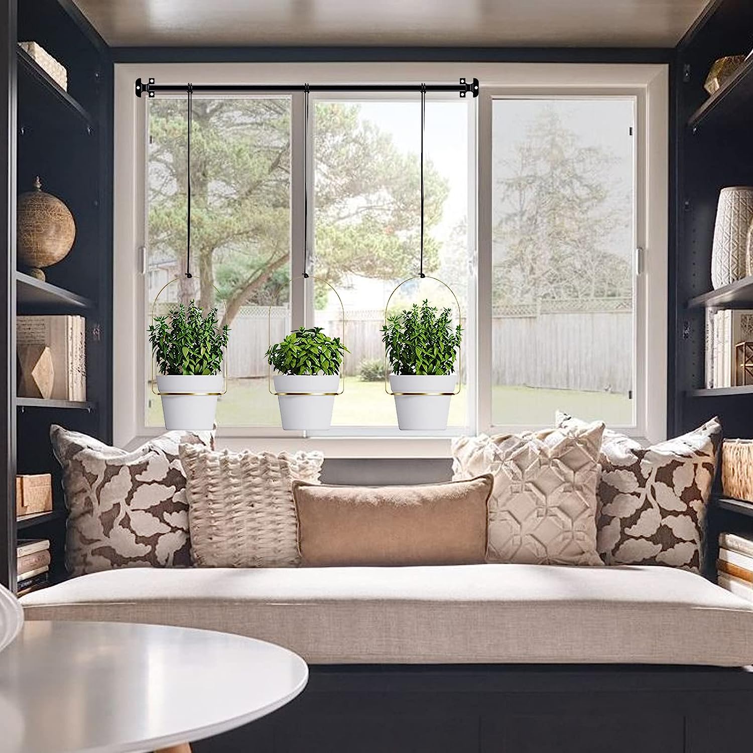 Dosili Hanging Planters For Window Indoor Plants Adjustable Wall Plant Hangers With 3 Flower Pots Hanging Plant Holder For Wall Kitchen Window Herbs And Garden Walmart Com